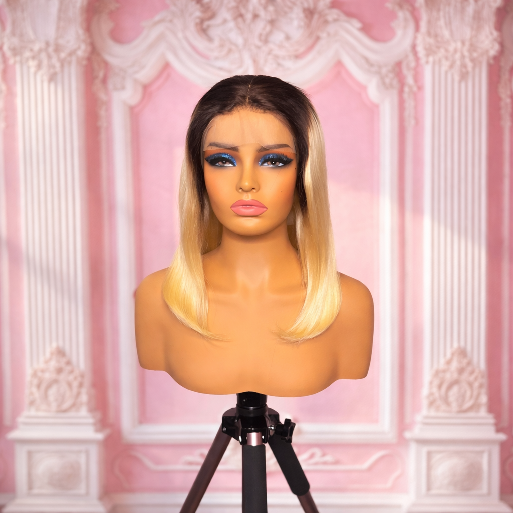 This 12” rooted blonde bob blends warm brown roots into soft blonde tones for a seamless, dimensional look. The color gives just the right amount of brightness while still feeling natural and wearable.